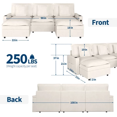 - Seat Dimensions: 53 inches [W], 108 inches [D], & 37 inches [floor to seat top]