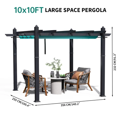 Introducing our 10×10 FT Outdoor Pergola, the perfect addition to your patio, garden, or backyard. Crafted from durable aluminum, this pergola features a retractable and adjustable canopy that allows you to control the amount of sunlight and shade, creating a comfortable outdoor space for relaxation or entertaining. The sturdy aluminum mesh stand doubles as a decorative flower stand, ideal for displaying your favorite plants and flowers both indoors and outdoors. Its versatile design serves as a mesh flower stand, garden flower stand, metal flower stand, and flower pot stand, making it a multifunctional piece that enhances your garden’s aesthetic.