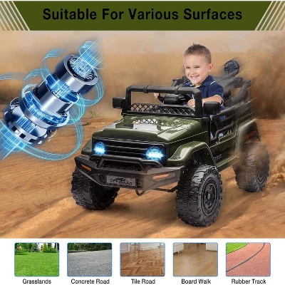 12V Kids Ride On Truck Car with Remote Control – Electric Ride On Toys for Toddlers, Spring Suspension, 3 Speeds, LED Lights, Bluetooth Music & Parent Safety Brake