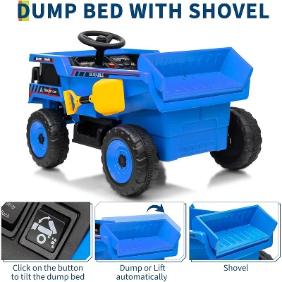 12V Ride On Dump Truck for Kids, Ride On Car with Remote Control, Construction Vehicles with Dump Bed & Shovel, Ride-On Toys 16.5″ Spacious Seat, Music, Headlights, Soft Start