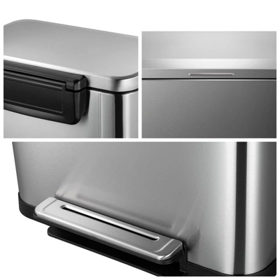 13 Gal & 2.1 Gal Trash Can Combo Set, Stainless Steel Garbage Can With Foot Pedal Quiet-Close Lid