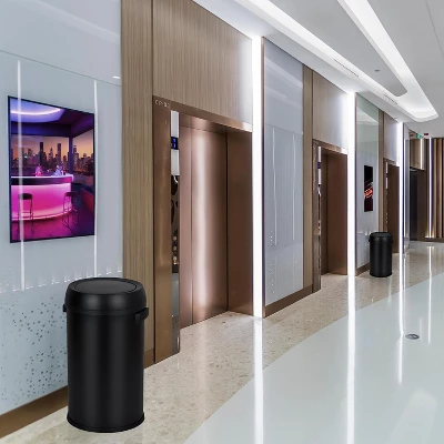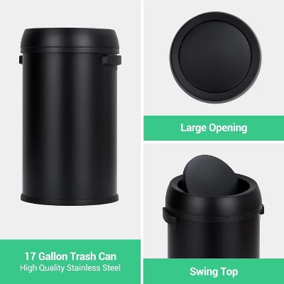 Upgrade your waste management with the 65 Liter/17 Gallon Swing Top Trash Can, the perfect solution for kitchens, outdoor spaces, homes, and offices. Crafted from fingerprint-proof stainless steel, this heavy-duty commercial round trash bin offers durability and a sleek, modern look that resists smudges and fingerprints, keeping it looking pristine with minimal effort. The swing lid design provides easy, hands-free operation, making disposal quick and hygienic, while effectively containing odors and preventing pests. Its spacious 65-liter capacity ensures fewer trips to empty, ideal for high-traffic areas or busy households. This open-top trash can is versatile, suitable for use as a rubbish bin, garbage and recycling can, or a commercial waste container, making it an essential addition to any space. Its sturdy construction and commercial-grade quality ensure long-lasting performance, even in demanding environments. Whether you need a reliable outdoor trash bin, a stylish kitchen companion, or a durable office waste container, the Swing Top Trash Can combines functionality with sleek design to meet all your waste disposal needs. Easy to clean and maintain, this stainless steel garbage can is the ultimate choice for those seeking a professional-grade, fingerprint-proof, and user-friendly trash solution.
