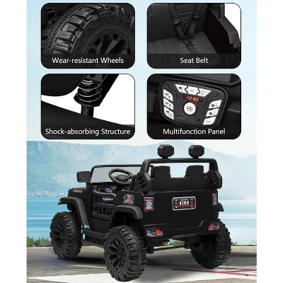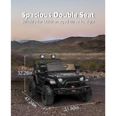 This 24V electric ride-on car features a spacious 20-inch wide dual-seat design, suitable for children ages 3-8 to enjoy rides with friends or siblings. Each seat includes an independent 3-point safety harness, and lockable doors provide added security during use.Powered by dual 200W motors and a 24V 7Ah battery, this ride-on car delivers stable performance with a maximum speed of 4.4 mph. Parents can adjust the speed between 2.17 mph and 4.4 mph to match their child’s comfort level. The anti-skid, wear-resistant PP tires ensure durability and traction on various surfaces, while the metal spring suspension system provides a smooth ride on sidewalks, grass, or gravel.Two driving modes are available: kids can operate the car independently to develop motor skills, or parents can take control using the 2.4GHz remote for added safety. The car also features realistic headlights, a horn, and engine sounds for an immersive driving experience. A built-in music player supports Bluetooth connectivity and FM radio, allowing children to listen to their favorite songs.This ride-on car is an ideal gift for birthdays and holidays, encouraging imaginative play while ensuring safety and comfort.
