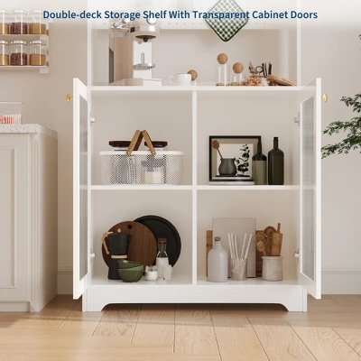 Adjust the shelves to fit your needs with customizable spacing perfect for large pots, tall bottles, or small tableware. This adaptability makes the sideboard buffet cabinet ideal for organizing a variety of kitchen essentials or household items, tailored precisely to your space.
