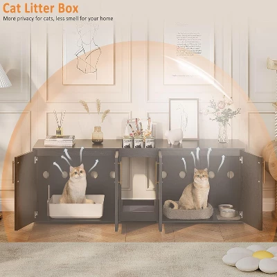 Packing list:Dual cat litter box enclosure x1Cat cushion x1Hardware bag x1Assembly guide x1