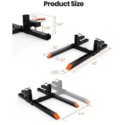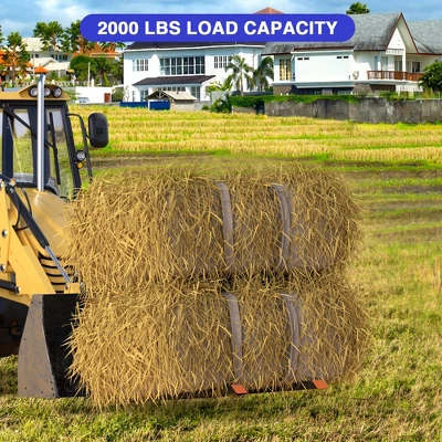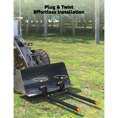 Engineered for versatility and strength, these clamp-on pallet forks are designed to fit most tractor loaders, skid steers, and bucket attachments. The heavy-duty steel construction supports up to 4,000 lbs, making them perfect for moving logs, lumber, hay bales, and other heavy loads. The adjustable stabilizer bar ensures secure spacing, preventing fork spread during operation. Simple clamp-on design allows fast installation without drilling or welding. Powder-coated finish resists rust and corrosion, ensuring long-lasting use in farming, landscaping, and construction work.
