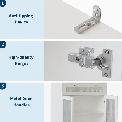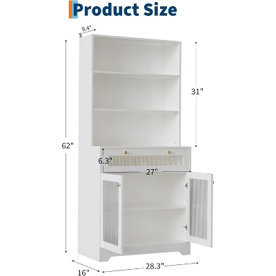Maximize your storage with the DobleePy 62″ Pantry Cabinet, designed to organize and declutter your kitchen, dining room, or living space. Featuring a spacious tabletop, one large slide-out drawer, three adjustable open shelves, and two cabinets with glass doors, this versatile tall cupboard offers ample room to store food, dinnerware, and appliances. Crafted from durable engineered wood with a sturdy frame, it includes an anti-tip kit for added safety. Whether used as a buffet cabinet, display shelf, or coffee bar organizer, it brings both stylish function and efficient storage to any room. Easy to assemble with clearly labeled parts and instructions.