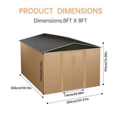 Large Metal Storage Sheds,8X 8 FT Outdoor Storage Shed , with Reinforced Sloping and Lock,Waterproof,for Backyard, Garden Patio Lawn