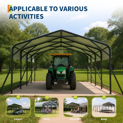 Metal Carport, Metal Garage with Base and Reinforced Frame for All Weather, Heavy Duty Carports for Rucks, Tractors or Party