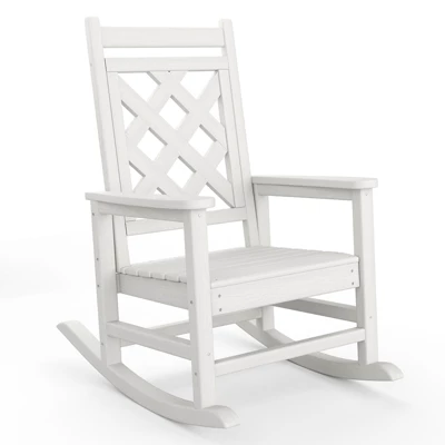 Made from high-density polyethylene, this Adirondack rocker resists cracking, warping, and rotting, ensuring years of reliable outdoor use. Its reinforced base and well-balanced design prevent tipping, providing a safe and smooth rocking experience for users of all ages.