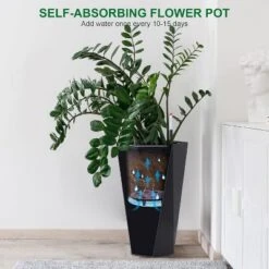 14.2″ Tall Planters Set Of 2, Self Watering Pots With Built-in Drainage And A Water Level Monitor