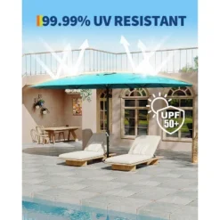 13 Ft Extra Large Double-Sided Patio Umbrella, Outdoor Umbrella With Water-Resistant Polyester Canopy, Crank Handle And 12 Strong Steel Ribs