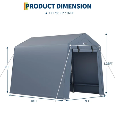 - Spacious & Versatile Storage: This 7×10 FT outdoor storage shed is the perfect portable garage for motorcycles, bikes, ATVs, firewood, or garden tools. Maximize your space and keep your valuables protected in any yard or driveway