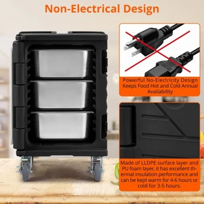 The vertical design maximizes storage capacity while minimizing footprint, allowing you to efficiently organize and transport food trays without compromising space. Equipped with universal casters, this box ensures smooth and effortless mobility across various surfaces, making it perfect for busy kitchens, catering events, and food delivery services.