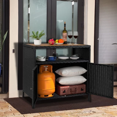Rattan Storage Cabinet, Outdoor Cabinet for Patio Outdoor Bar Cart with 2 Doors & Adjustable Shelves, Patio Storage Box Organizer for Poolside, Patio, Backyard