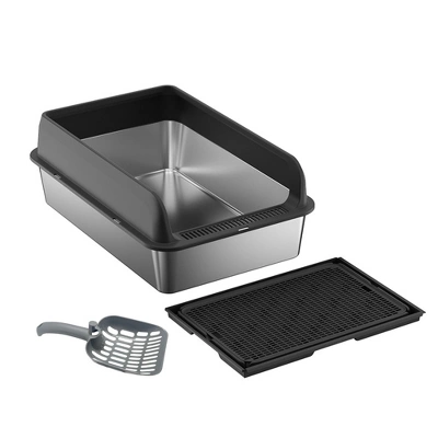 Stainless Steel Cat Litter Box with Lid, Large Litter Box for Big Cats Non-Stick Stainless Steel Cat Boxes with Double Layer Litter Mat and Scoop, Easy to Clean