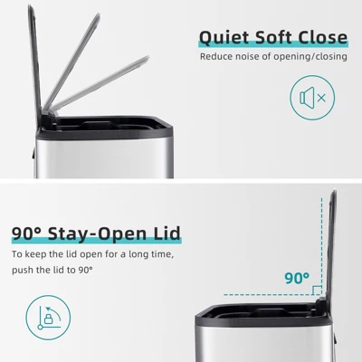 Stainless Steel Kitchen Trash Can 13 Gal, Hand Free Garbage Can With Inner Bucket & Soft Close Lid