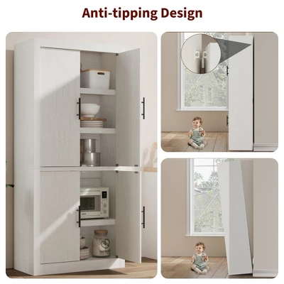 Maximize your space with this 70″ tall wood pantry cabinet, featuring adjustable shelves and spacious compartments for kitchen, dining, or living room use. Made from durable MDF with anti-tip hardware, it’s safe for homes with kids or pets. The farmhouse-style design includes doors, drawers, and magnetic locks for dust-free storage. A wide metal handle adds comfort and style, while easy-clean surfaces keep it looking fresh. Numbered parts and clear instructions ensure hassle-free assembly.