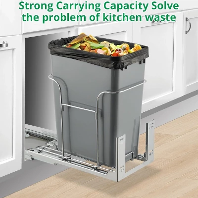 Undercabinet Trash System: 30L/35L Pull-Out Drawers W/Door Kits & Dampers | Fits 10-12″ Cabinets | Steel | Silver (No Bins Included)